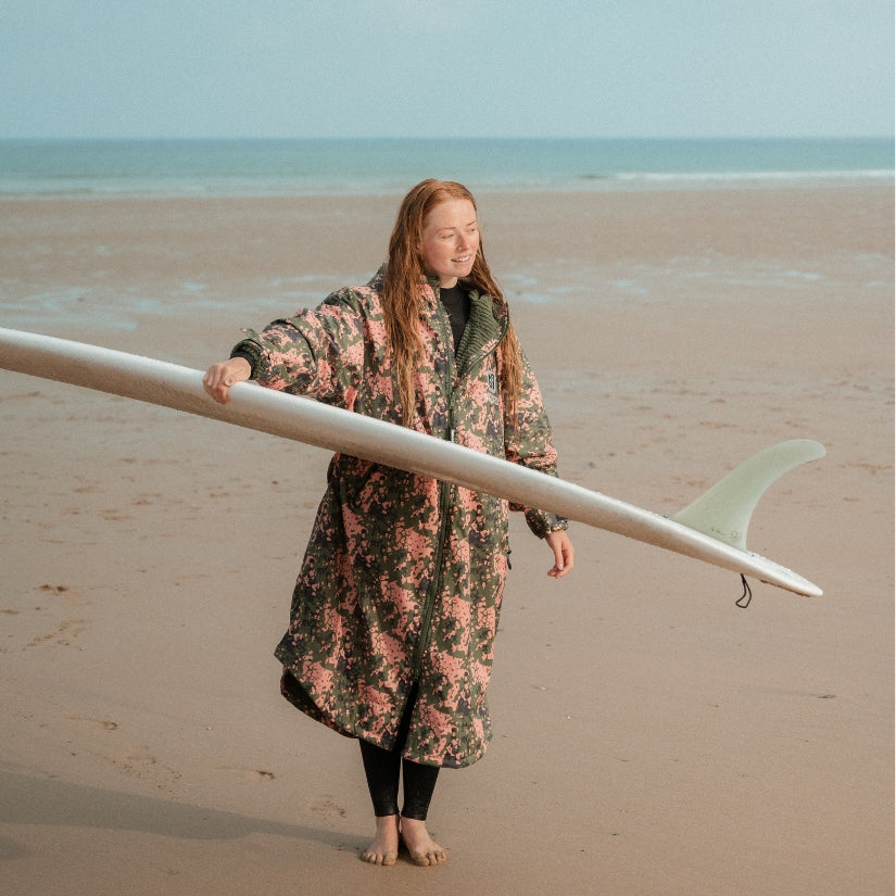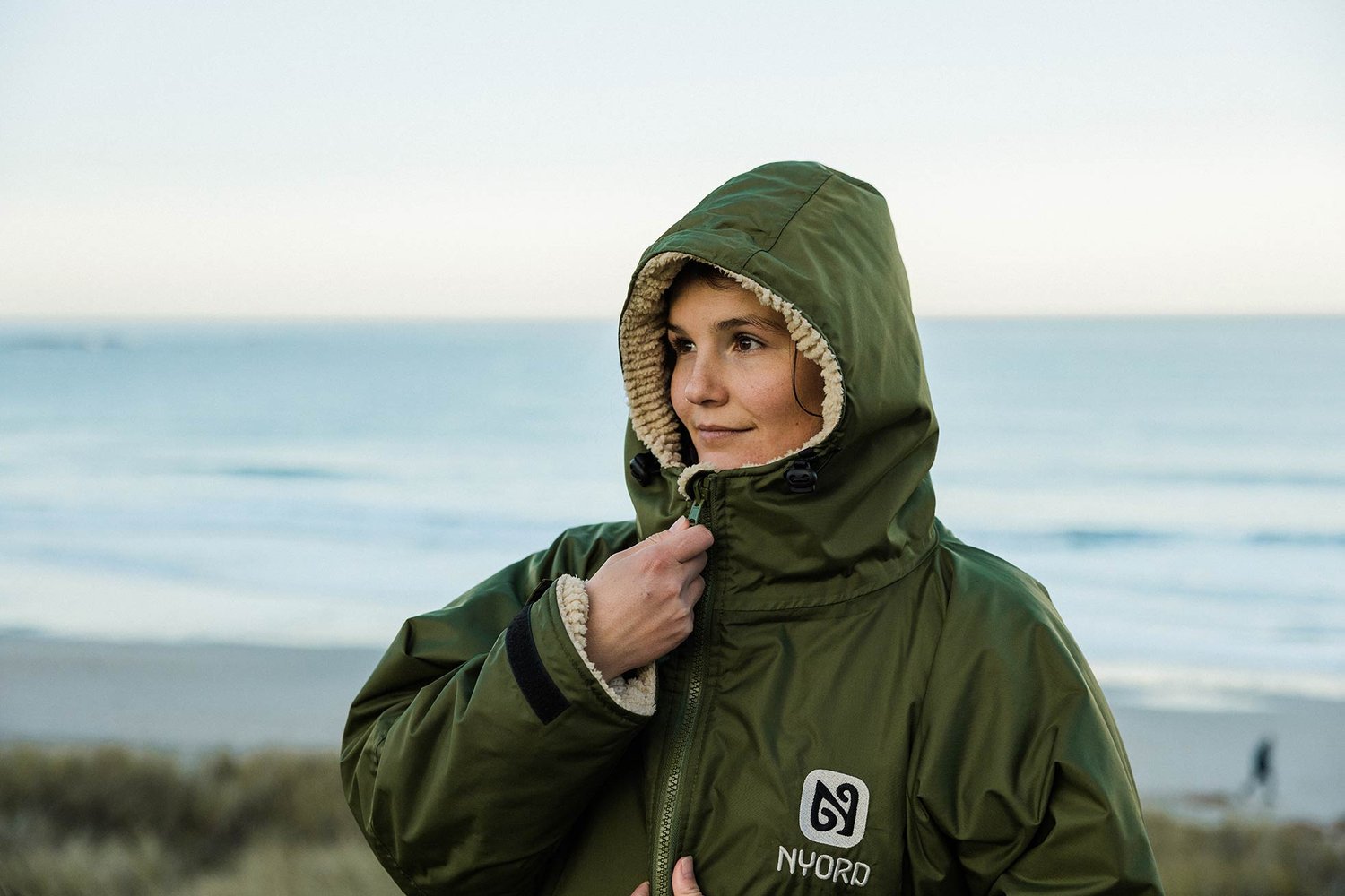 Waterproof changing robe with recycled PrimaLoft lining, designed to fully protect you before and after cold-weather activities. This robe is packed with extra features to keep you super warm and comfy, including deep fleece-lined pockets, a drawstring hood, and a roomy fit for easy changing.